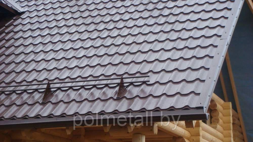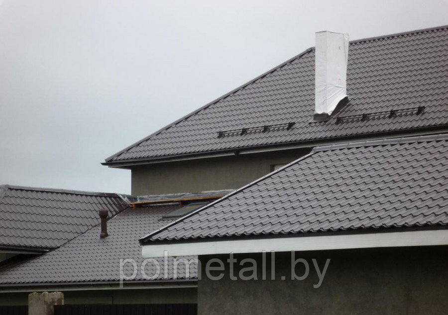Монтаж осуществляется внахлест и требует использования обрешетки, уплотнителя и специальных кровельных саморезов, которые поставляются в комплекте.